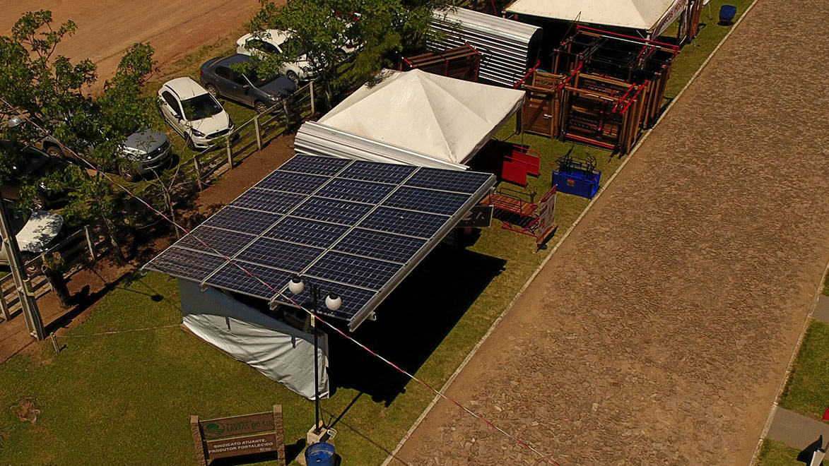 Durante um dia de sol forte, os painéis produzem energia em sua capacidade máxima.